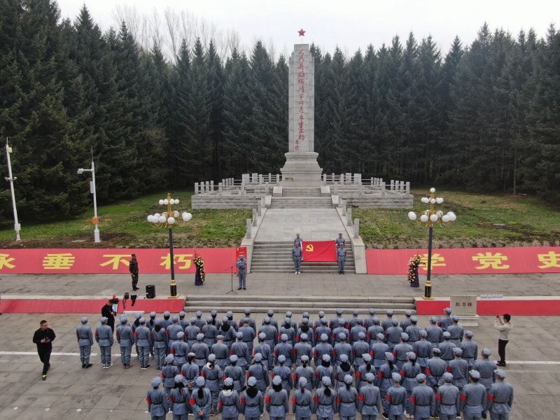 活動中,全體人員換上了紅軍服,身臨其境感受當年抗聯(lián)將士為民族、為國家浴血奮戰(zhàn)、不怕犧牲的抗聯(lián)精神。在楊靖宇烈士殉國地遺址,全體人員唱響國歌,以沉痛的心情瞻仰了楊靖宇烈士遺像并向烈士紀念碑敬獻花籃,默哀致意。在鮮紅的黨旗下,全體黨員舉起右手,握緊拳頭,開始重溫入黨誓詞宣誓活動,讓黨員在黨旗下接受心靈的凈化和洗禮,牢記共產(chǎn)黨員的政治責任和歷史使命,永葆共產(chǎn)黨員的政治本色。